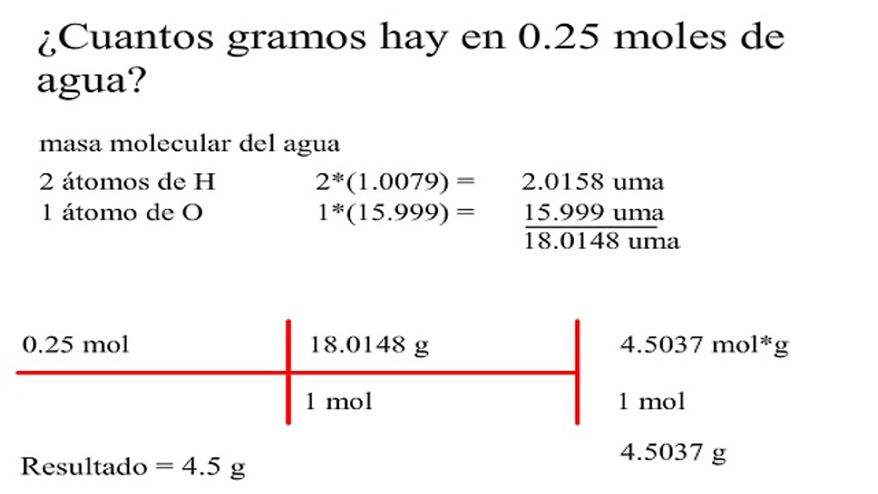Cuantos Gramos Hay En 0 25 Moles De Agua Video Dailymotion