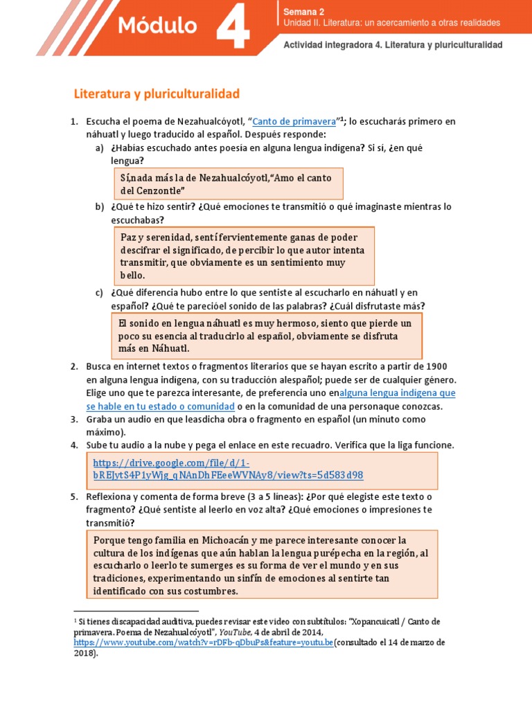 Modulo 4 Semana 2 Actividad 4 Literatura Y Pluriculturalidad Util Para 2021 Youtube